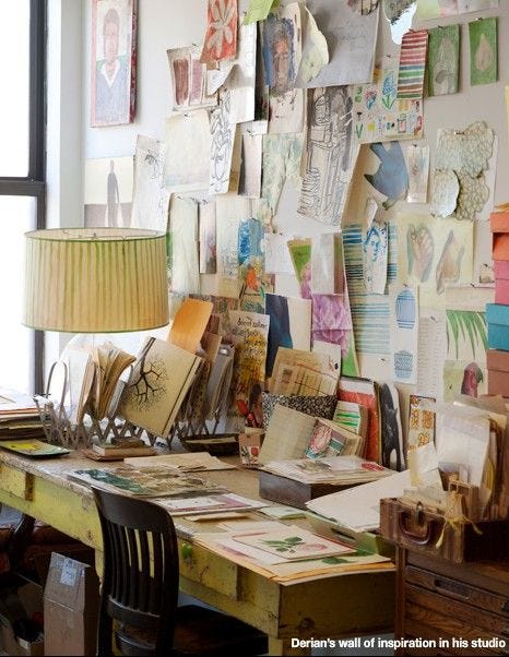 I’m weirdly fascinated with artist’s studios, more specifically the creative process of artists and how that bleeds into and informs the physical spaces they occupy. I want to have the sort of artistic mania that leads to piles of creative mess. I want to collect my inspirations and plaster them on the walls. I desperately want to own the home I live in so I can exist in it in whatever way I choose.